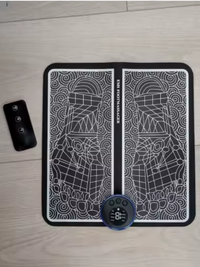 Yes ! Place both feet on the mat, press “+” to turn on, “M” to change among 8 modes, and “+/–” for intensity. To power off: go down to 0, then press “-” again.